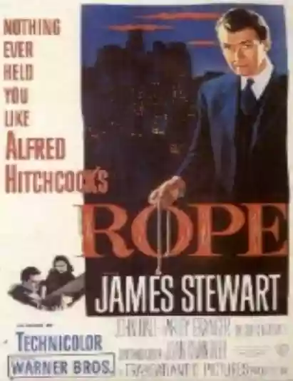 Molti considerano "Nodo alla gola" (titolo originale - molto più azzeccato - "The Rope", anno 1948) poco più di un esperimento, un esercizio di stile volto ad appagare lo sconfinato ego registico di colui che a tutto gli effetti può considerarsi il maestro non solo del thriller, ma anche del cinema voyeuristico: Alfred Hitchcock. Il concetto che sta alla base di questa pellicola, infatti, è quella di girare interamente un film senza stacchi, utilizzando un unico, ininterrotto piano sequenza. Cominciamo subito col dire che un tale progetto, così come venne concepito, non si sarebbe comunque potuto realizzare, per il semplice fatto che, ai tempi, non esistevano bobine abbastanza lunghe. Proprio per tale motivo, Hitchcock decise di ovviare all'inconveniente utilizzando una serie di espedienti registici (a dir la verità non tutti pienamente riusciti), per cercare di limitare nello spettatore la sensazione di "stacco" di inquadratura e suggerendo perlomeno l'illusione di un piano sequenza unico. Ecco allora che la telecamera, ogni dieci minuti circa, si avvicina ad un oggetto scuro (il più delle volte una giacca), fino a riempirne l'inquadratura, salvo poi allontanarsene (a stacco avvenuto), come se si fosse trattato di un semplice movimento di camera in piano sequenza. Per risolvere gli inevitabili problemi scenografici di mobilità della macchina da presa, vennero addirittura installate delle piccole rotelle, in pratica sotto ogni elemento d'arredo all'interno dell'appartamento, oltre ad una serie di microfoni fissi in modo da poter rinunciare alla giraffa.