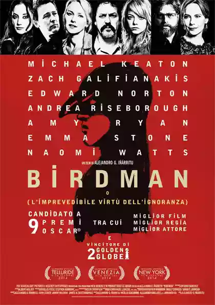 Allora questo è un film che stupisce non tanto per la trama perché è diciamo abbastanza vista e rivista, ma in realtà è bello il modo in cui te la mette in scena Iñárritu, ossia attraverso un unico e lunghissimo piano sequenza e anche attraverso una bellissima fotografia e un livello tecnico magistrale, ma soprattutto il film è anche in un certo senso una critica al mondo dei cinecomics, ma in parte anche al web e più di tutti al cinema in generale, poi gli attori sono bravissimi ma più di tutti spicca in particolare oltre a Michael Keaton un eccezionale Edward Norton
