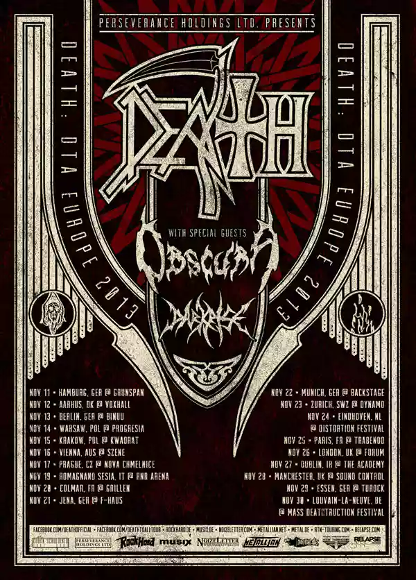 "E’ una delle reunion, se di reunion si può parlare, più attese e discusse dell’anno per quanto concerne la musica estrema: si riformano i Death, con la formazione dell’album “Human”, per un tour tributo a quel genio musicale che reca il nome di Chuck Schuldiner.