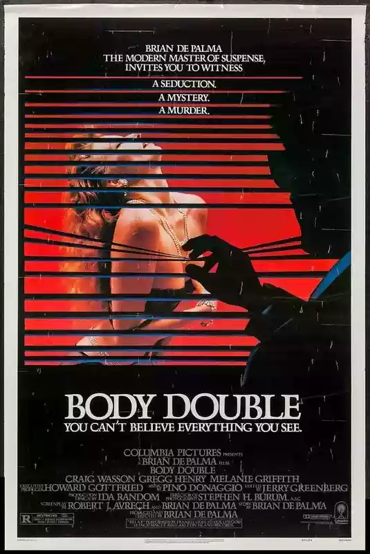 Il doppio, il cinema e la realtà, il voyeurismo nella vita e nella finzione, il cinema hitchcockiano e la sua tensione narrativa canonica, il disincanto della pornografia, la patina degli anni Ottanta, le musiche di commento classico e le canzoni synth pop. C’è davvero tutto in questo film di Brian de Palma, c’è forse il momento d’incontro tra uno dei cinema per eccellenza, quello di Alfred Hitchcock, e le nuove tendenze di una società e una cultura sempre più spietata, pornografica, cinica.