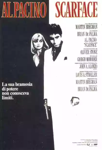 "Scarface" è questo: un'infernale parabola morale sul potere e l'avidità, sulla voglia di riscatto di un uomo che diventa il più pericoloso boss della Florida e cade sotto i colpi della sua stessa ferocia. Il regista Brian De Palma lascia da parte i suoi trucchi più surreali per offrire una regia secca ed essenzialmente realista, adatta alla crudezza delle vicende raccontate. Il ruolo di Tony Montana, poi, sembra cucito su misura per Al Pacino: sbruffone, sarcastico, violento nel linguaggio (la parola "fuck" e i suoi derivati vengono pronunciati 219 volte) e quasi sempre sopra le righe. Da antologia la scena finale, che non descrivo per non rovinare la sorpresa a quelli che ancora non hanno avuto modo di gustarsi questo capolavoro.
