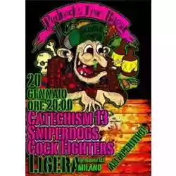 Gli Sniperdogs e i Cock-fighters (sciolti nel settembre 2013, dopo aver pubblicato il loro unico disco “Il Disagio...E Le Fallite Vendette”) li conosco personalmente e me li sono già visti spesso. Tra surf-garage e rock 'n' roll hanno spaccato come al solito. Il meglio di sé lo danno quando il pubblico della loro città li incita e si compiace del loro baccano. Stavolta però non è serata. Il pubblico è inesistente ed è come se i Catechism non abbiano mai smesso di suonare. Uno dopo l'altro fanno il loro sporco lavoro ma c'è l'eco di MONGOLOID che li sovrasta. Sento i suoni, i riff, i ritmi, le voci, ma non li apprezzo. Provo disagio e imbarazzo, come quando devi per forza passare qualche ora da solo con una che ti ha appena mollato. Mai stato in tre (tolti quelli delle band) a un concerto.