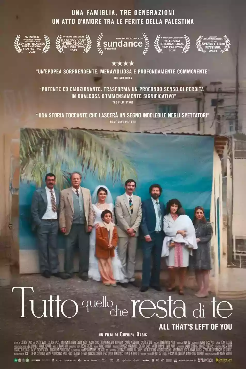 A Venezia, quest'anno, un bel "mucchietto" di film avevano come tema principale il conflitto israelo-palestinese. Giusto: il cinema ha, tra gli altri compiti, il dovere di fotografare (e fermare) la realtà. Due fra questi hanno colpito maggiormente critica e pubblico: "La voce di Hind Rajab" di Kaouther Ben Hania (Leone d'argento) e il qui recensito "Tutto quello che resta di te", di Cherien Dabis (al suo terzo lungometraggio, a 48 anni), regista, sceneggiatrice e (a volte) attrice nata nel Nebraska ma di origini palestinesi.