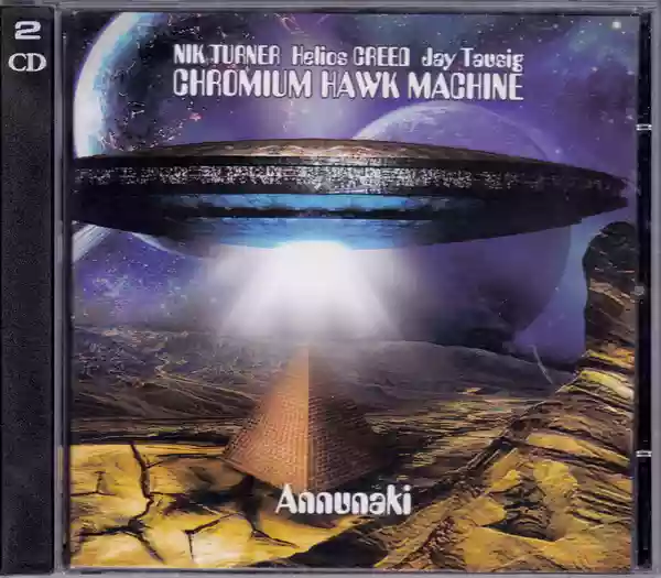 Hawkwind e Chrome sono, con i Gong – e più di recente con gli Ozric Tentacles, gli alfieri principali del cosiddetto space-rock. L’epopea cosmica degli Hawkwind è qualcosa di leggendario, chi ha amato questo gruppo alla follia ne colleziona i dischi e ne officia il culto come un culto religioso:dischi come “In Search of Space” e “Masters of the Universe” sono oggi classici senza tempo.A suo modo anche “Alien Soundtracks” dei Chrome di Helios Creed, con i suoi suoni elettronici e fantascientifici ha fatto storia. Ora due menti “illuminate” come quelle di Nick Turner e Helios Creed hanno deciso di unire le forze – coadiuvati dal multistrumentista Jau Tausig – in una nuova fantasmagorica creatura denominata “Chromium Hawk Machine” sotto l’egida della sempre lungimirante Black Widow di Genova. Dico subito che il disco, intitolato “Annunaki”, è pazzesco: l’incontro fra l’universo degli Hawkwind e quello dei Chrome ha generato una musica allucinata, psichedelica, spaziale, ipnotica che ci proietta in una dimensione al di là del tempo e dello spazio. Si tratta essenzialmente di jam sessions in cui viene liberata la creatività folle e delirante dei musicisti: il basso pulsante, il sax, i synth e la chitarra acida e distorta creano delle ambientazioni cosmiche e futuriste come nell’iniziale “Cosmic Explosion”. Questa musica potrebbe essere la colonna sonora ideale di un viaggio nello spazio a bordo di un’astronave mistica: la qualità e l’intensità non vengono mai meno. Il secondo dischetto è forse ancora più estremo del primo con un pezzo come la lunga – oltre 32 minuti – “Crying Moon, Dying Sun” che ci conduce verso mete sconosciute in paesaggi cosmici ed extraterrestri. Siamo di fronte ad un grande disco che mi sento di consigliare caldamente a tutti i “Viaggiatori Cosmici! Disponibile presso http://blackwidow.it/.