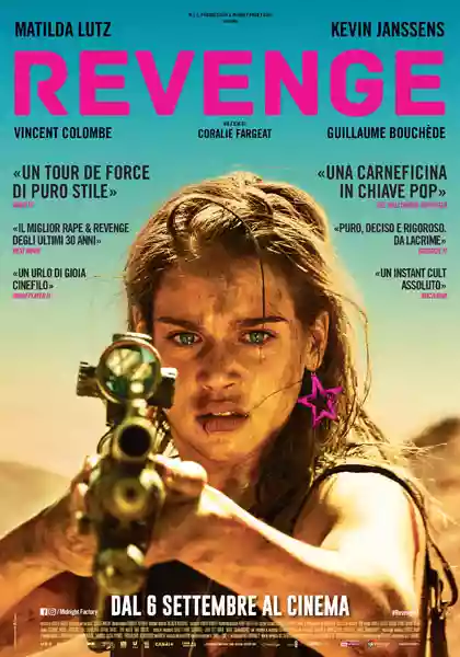 Revenge è ambientato nel mondo reale, ma la fisica, la medicina, la logica e la probabilità seguono delle dinamiche tutte nuove, banalmente finalizzare a far trionfare la vendetta della bella figa in locandina. Una che compare in scena sculettando in costume (e la regista non teme di indugiare troppo su quel culetto tanto bello) con la musica a tutto volume in una casa da sogno nel deserto. Dopo poco veniamo a sapere che è la scopamica di uno che ama andare a caccia con due compari balordi. Da lì parte il degenero che trasformerà la bambolina, così, dal giorno alla notte, in una killer spietata e inarrestabile, una donna ovunque capace di tutto.