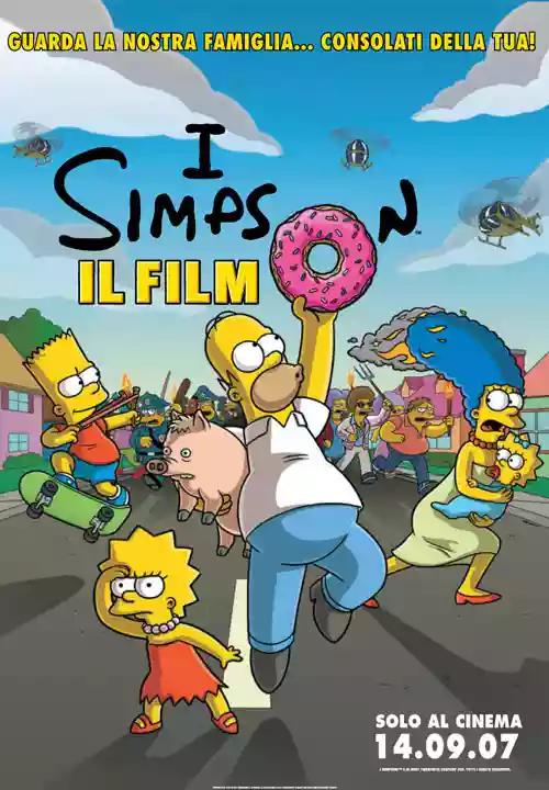 Tutto avviene quando quel pasticcione di Homer decide di gettare gli escrementi del suo prezioso maiale nel laghetto di Springfield, contaminando tutta la città. Il presidente degli Stati Uniti (chi? George Bush figlio? Macchè! Al limite Arnold Schwarzenegger!) decide di isolare Springfield sotto una campana di vetro. Non dico altro, dico solo che il film va visto. Perché nei Simpson la trama è poca roba, è la cosa più inutile, a contare sono le gag e le intuizioni visive, il modo di costruire la risata attraverso felicissimi spunti di narrazione, partendo dal basso per giungere, come una furia, al culmine, alla vetta, all'empatia classicheggiante. Come non è mai successo a nessuno.