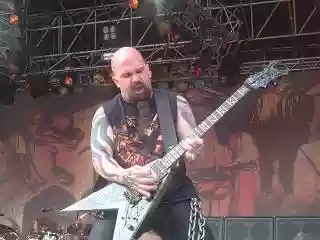 Dopo un'estenuante attesa salgono sul palco quattro loschi figuri armati di strumenti, il sole è basso all'orizzonte e parte l'apocalisse. Gli Slayer sono dei veri veterani, dei professionisti del thrash/death. Uno show perfetto, tranne per Araya, che come al solito è un ibrido: non è un bassista e non è un cantante. Lo show comincia con la prima traccia di God Hates Us All, ma fortunatamente i 4 omoni non torneranno più sull'argomento nuovi album per il resto della serata. Chemical Warfare, Dead Skin Mask e tanti estratti da Reign In Blood farciscono la buona ora e mezza di live show. Ad un certo punto silenzio... tre colpi secchi sui tom di Lombardo e la folla esplode: parte Reign In Blood; il pogo è così esagerato che la terra dell'arena si alza e il palco scompare, non si vede più nulla. Postmortem è introdotta da Araya che dice "Do You Wanna Die?" e tutti i nostri caproni compatrioti "Sìììììì" e lui "Are You Sure?"... gran pezzo. Conclusione tra le fiamme dell'inferno con la potente Angel Of Death, dove il grande Dave Lombardo strizza l'occhio a Hoglan prolungando il solo di doppio pedale della fine di altre due battute e accendendo la folla.