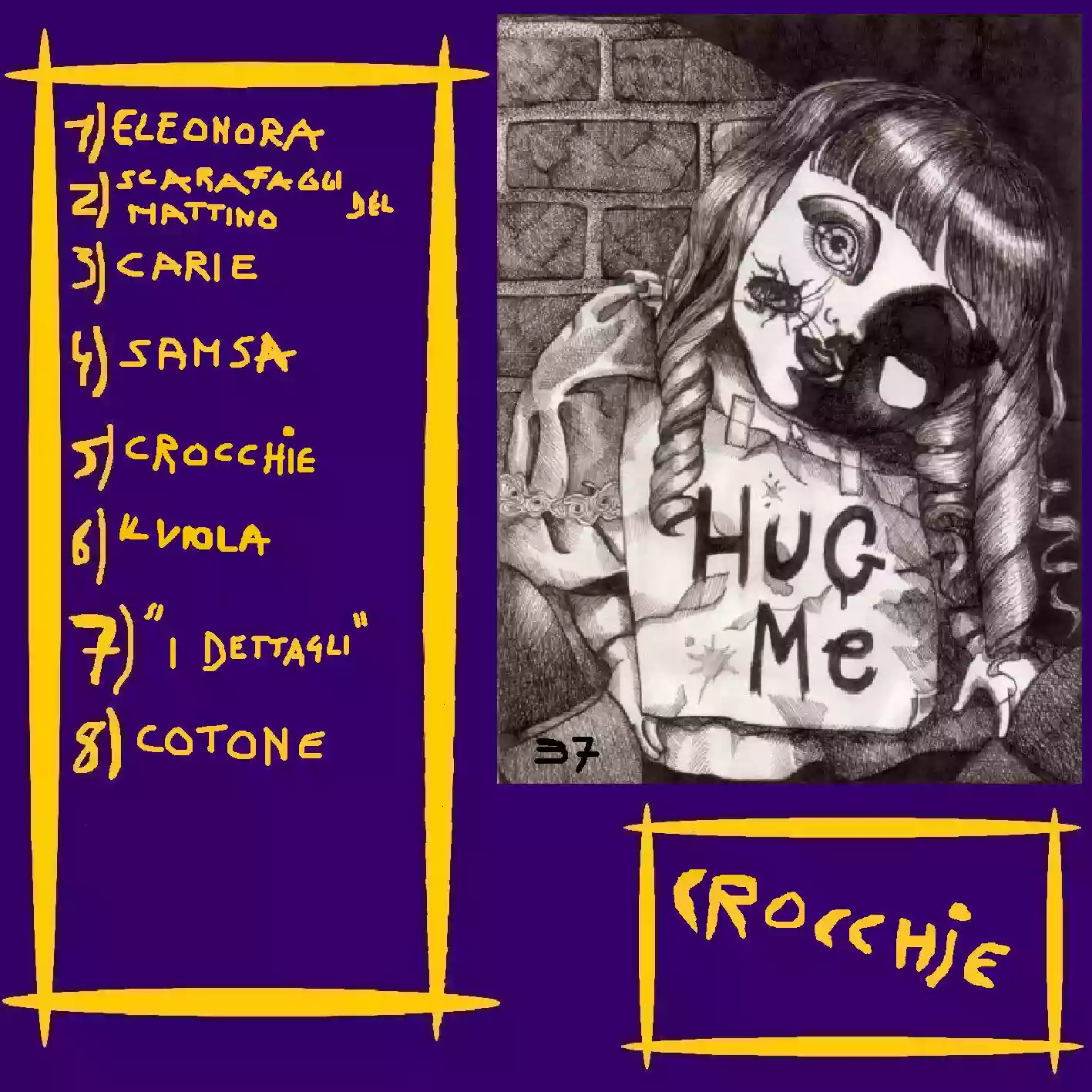 Crocchie è un Trio di Palermo che vede Ruggero Diella alla Voce/Basso, Gaetano Russo alla batteria e Mara Mariani alla Voce/Chitarra. Non sono un gruppo di nicchia, sono meno di questo: un paio di esibizioni-bricioline in locali minori, nessun sito internet, impossibilità di reperire il loro unico prodotto. Grazie all'amicizia con Ruggero sono riuscito ad avere Crocchie via posta (il prezzo del ciddi si aggirava intorno ai 12 euro), anche se attulamente le 200 copie di base prodotte sono terminate. Appena ho finito di ascoltare la prima volta il disco ho avuto i brividi, sapevo, SAPEVO di avere tra le mani un gioiello. Gioiello grezzo, mal registrato che puzza di bootleg minore, ma gioiello. Sommerso in un mare di ostriche amorfe questo album è quello che contiene la perla. Mescidanza di Post-Rock, Grunge, Hardcore, Cantautoriale e Sperimentale un banchetto sonoro di De-Generi assortito in maniera carnascialesca e lucida. Le canzoni presenti sono 8, vediamole una ad una: