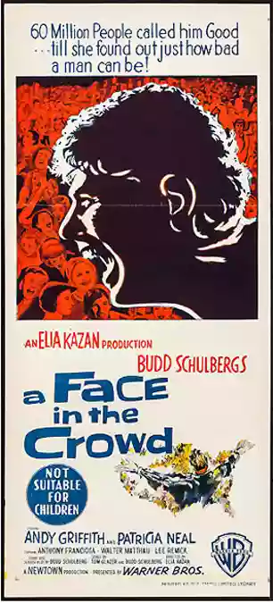 Intanto va premesso che il cinema di Kazan ha sempre avuto la capacità di far risaltare certi lati oscuri dell'apparentemente felice società yankee, tanto linda in superficie ma altrettanto sordida e contradditoria in certi risvolti sociali ed economici (basterebbe solo citare il film "Fronte del porto" con Marlon Brando per farsene un'idea). E tutto questo va riconosciuto ad Elia Kazan, che però proprio negli anni '50 non era emerso bene nella fase del maccartismo dal momento che aveva citato alcuni suoi colleghi di lavoro come simpatizzanti comunisti (pur essendo questi soltanto progressisti) e mettendoli nei guai ad Hollywood. Insomma Kazan doveva pur farsi perdonare in qualche modo per la sua scorrettezza e, restando nel solco di un cinema impegnato, nel 1957 realizzò "Un volto nella folla" (basato sul racconto "Your Arkansas traveller" di Budd Schulberg).