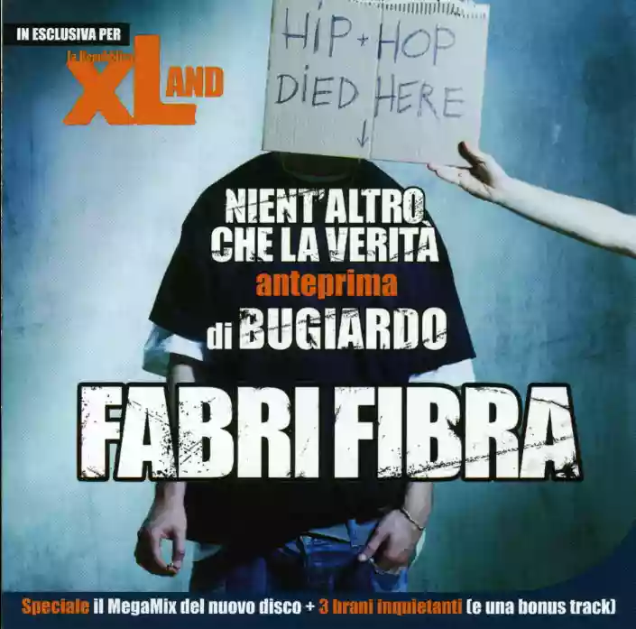 Nell’intervista allegata a XL il Fibra parla a raffica… di Mastella (?), di Bin Laden (??), del fascino che prova per Fini (!), della simpatia per Lapo (?) e per Laura Chiatti (?!), di Pasolini (“perchè era gay” dice), della sua presunta omosessualità (“anch’io sono ambiguo” dichiara), della sua ammirazione per Scamarcio (!!)… il tutto “buttando lì” il fatto che avrebbe piacere andare a San Remo (“se mi invitano ci vado, che ci sarebbe di strano?” dichiara sempre su XL... eh eh eh, furbeeeetto...). Insomma, la taratura sul personaggio ognuno deve metterla a proprio piacimento… le somme poi si tirano da sole.