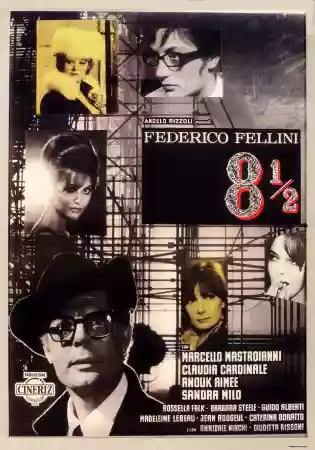 Guido quindi inizia a scrutare in se stesso nella sua vita, nel film che deve creare e nella donna del sogno da raggiungere (Claudia Cardinale) mentre rivive le sue ossessioni, i suoi dubbi le sue passioni, le donne della sua vita : Carla l'amante (la dolce e procace Sandra Milo) e Luisa la moglie paziente e arrabbiata (la splendida Anouk Aimée), l'amica (Rossella Falk) e i ricordi lontani della memoria: l'infanzia, i giochi da bambini, la casa in Romagna, l'educazione cattolica e i giochi amorosi della Saraghina.