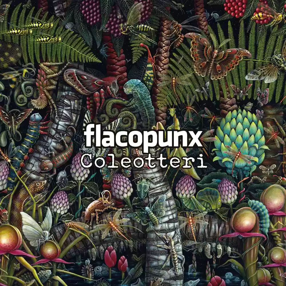 Flaco, ormai ex membro dei Punkreas, presenta il suo nuovo progetto solista “Flaco Punx” con un album orecchiabile ma complesso: “Coleotteri”. Un album che passa da un Punk più classico ad uno Ska leggero e movimentato, senza fermarsi di fronte a soluzioni come un Power pop più elaborato. Aiutato da Mattia Foglia al basso, Dario Magri alla batteria e Carlo Ferrè alla voce, Flaco porta un’opera studiata e matura in cui tratta temi difficili come la morte di Dio, gli sconvolgimenti geopolitici e la manipolazione del DNA. La prima canzone che troviamo è “Gorky”, che richiama le tensioni politiche che caratterizzano la nostra società attraverso l’immagine della caduta del muro di Berlino e della guerra fredda. Si passa poi a “Bubblegum” e “Coleotteri”, la prima incentrata sul tema della manipolazione genetica e di quello che ne può scaturire, la seconda invece uno ska più leggero e ironico. “Codice rosso” è invece un brano incentrato sul tema del terrorismo dilagante che richiama la gucciniana “Dio è morto”. “Dodici ore” ci invita a non arrenderci allo stato attuale delle cose, mentre “Scura” torna sulla politica internazionale cantando in modo aggressivo il dramma dei rifugiati di Guerra. Continua con “La canzone di Adamo”, ironica e irriverente, e “Zona di influenza” un vero e proprio inno antiamericano. “1861” è un tentativo di risvegliare nell’ascoltatore una sorta di coscienza civica mentre “Testata nucleare” chiude l’album con una vera e propria esplosione sonora.