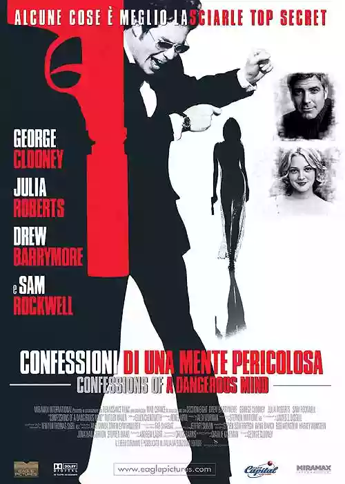 Questa alquanto improbabile autobiografia “Confessions of a Dangerous Mind “ segna l'esordio alla regia di George Timothy Clooney, qui anche in veste di attore e vede tra gli altri protagonisti anche Rutger Oelsen Hauer, ed in un cameo William Bradley "Brad" Pitt con Matthew Paige “Matt” Damon si rivela contenere una storia nella storia con killers e servizi segreti ai tempi della “Guerra fredda” e si lascia guardare mentre scorre con colpi di scena ed esilaranti situazioni nell'arrampicata verso il successo televisivo ed il successo c/o la CIA.