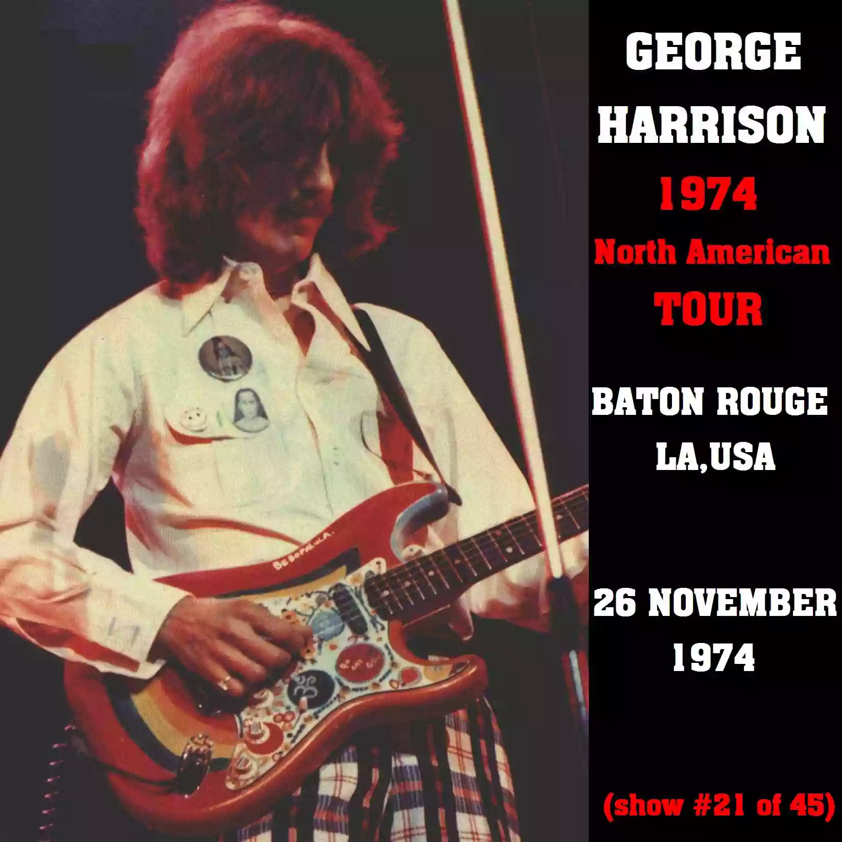 Il 26 Novembre 1974 arriva a Baton Rouge il tour di George Harrison, serie di concerti in nord America per lanciare sia il disco in uscita, "Dark Horse", sia la nuova omonima etichetta indipendente di George che tra varie difficoltà riuscirà a pubblicare nel 1976 il primo titolo: "33 & 1/3".