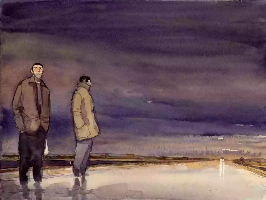 Naturalmente Gipi non parla di religione in modo serioso, la vena è piuttosto ironica e tagliente come traspare dalla frase in cui si riassume tutto il cinismo del cattivo:”....ammesso che l' inferno esista davvero, ci sono novanta probabilità su cento che sia ancora in costruzione.” E' proprio dopo questa esclamazione che il compagno precipita nel terrore di aver contribuito con il suo gesto alla posa di parecchi mattoni. Ed è dopo questa frase che ci convinciamo che un fumetto è davvero grande perché chi lo disegna è soprattutto un poeta, nel caso di Gipi delle miserie umane.