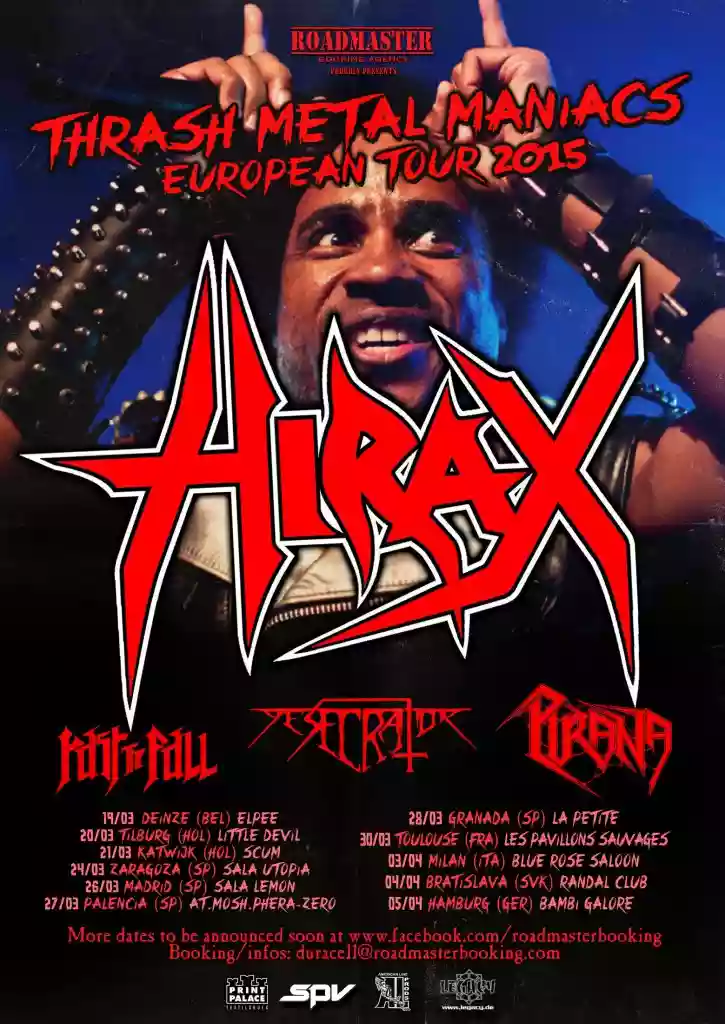 Metallari assortiti e nostalgici anni Ottanta venite a raccolta, gli Hirax sono in città. Tutti pronti per una serata all'insegna dell'accoppiata thrash metal e birra? Il Blue Rose Saloon di Bresso, alle porte di Milano, cogliendo l'occasione del fine settimana pasquale, ha infatti organizzato una bella doppietta, riuscendo a portare i veterani Hirax da una parte e i redivivi Tank dall'altra, vecchie leggende degli anni d'oro della NWOBHM da qualche anno tornati a farsi sentire. Per chi non avesse troppo chiaro di chi stiamo parlando, gli Hirax furono, a metà anni Ottanta, tra i molti che calcarono le assi dei palchi della California, in un momento che, oltre ai soliti colossi del genere, vedeva anche un proliferare di formazioni magari meno note ma che riuscirono comunque a piazzare qua e là solchi vinilici che ancora oggi fanno impazzire gli appassionati. Il gruppo ai tempi ebbe vita breve, lasciandosi dietro due lp e la fama di "band di culto", per tornare in circolazione solo col nuovo millennio, disseminando gli ultimi quindici anni di un'infinità di album, ep e split. Se ciò fa sì che la discografia risulti essere molto frammentaria e non tutte le uscite siano facilmente reperibili, va però riconosciuto che i Nostri si sono dati da fare sia in studio che dal vivo e che non campano dell'aurea di gruppo di nostalgici dei tempi andati. Capitanati, come al solito, dal grande Katon De Pena, cantante tanto carismatico quanto poco noto, gli Hirax sono passati da quel di Milano per promuovere la loro ultima fatica, "Immortal Legacy", disco che, a quanto pare, poco aggiunge a quanto già detto in passato e non fa gridare al miracolo, ma concede comunque una sana dose di thrash metal d'annata. Le presenze nel locale vanno oltre le più rosee aspettative, con un'ottantina circa di presenti già durante l'esibizione dell'ultimo gruppo di supporto, gli australiani Desecrator, mostrando un tasso di "alcolica partecipazione" che verso la fine dell'esibizione degli americani sarà alla base di un "singolare" siparietto, di quelli dove non si sa se c'è da ridire o piangere. "Hellion Rising" apre le danze, mostrando un gruppo coeso e che non fa prigionieri, con un Katon leader indiscusso della scena. Le schegge musicali degli Hirax sembrano essere il perfetto esempio di un certo tipo di thrash, veloce, grezzo e aggressivo, anche grazie a brani dal minutaggio a volte risicatissimo, l'esatto opposto di un metal forse fin troppo prodotto e prolisso che negli ultimi tempi sembra avere preso piede (chi ha pensato agli ultimi Exodus?). La presenza da headliner dà la possibilità agli americani di poter ampiamente spaziare, proponendo brani più recenti, come "Black Smoke", acconto a pezzi più datati, come "El Diablo Negro", che quindici anni fa segnò il ritorno in pista del gruppo californiano, fino a "Hate, Fear and Power", "Destroy" e la conclusiva "Bombs of Death", schegge impazzite piovute direttamente dagli anni dei vinili e delle demo su musicassetta. Se il treno per la fama e la gloria sembra essere ormai passato da un pezzo, relegando di fatto gli Hirax a gruppo di nicchia, è innegabile che, almeno dal vivo, i quattro di Buena Park sanno come rendersi protagonisti della serata, con un Katon che, in quanto a carisma e capacità di coinvolgere il pubblico, non è di certo secondo a nessuno. E proprio parlando del pubblico arriviamo a quanto anticipato prima: che ad un concerto thrash metal si beva a più non posso non è una novità, ma il tasso alcolico di buona parte dei presenti era tale da chiedersi quanto ad alcuni simpatici capelloni tra le prime file fosse rimasto del proprio autocontrollo. Al netto delle autentiche botte da orbi che volavano sotto il palco, ad un certo punto Katon e soci hanno preferito interrompere momentaneamente la propria esibizione per segnalare la presenza di alcuni personaggi che, causa qualche bottiglia di Jack Daniel's di troppo, iniziavano a mostrarsi piuttosto molesti sia nei confronti dei musicisti che della loro strumentazione. Apriti cielo! Gli astanti si sono quindi divisi in due fazioni (quasi) avverse, tra chi aspettava pazientemente che qualcuno spiegasse, in spagnolo, al sabotatore che era il caso di darsi una calmata e chi invece supportava la causa dell'ispanico, anzi, si incazzava pure, venendo a scoprire solo a mezzanotte passata di un triste venerdì sera che i propri idoli di giovinezza propagandavano non tanto l'astinenza dagli alcolici quanto il "bere con responsabilità". Chiarite le cose, più o meno, e dopo che il guastatore è schiantato per terra alla prima pogata, Katon e soci hanno capito che la battaglia era persa in partenza e che era meglio lasciar perdere e andare avanti. Mega finale, quindi, con i cavalli di battaglia dei tempi che furono e con il buon De Pena che ci teneva a rassicurare i fan che dopo il concerto si sarebbe fermato a bere con loro al bar del locale, che se fai la figura dell'astemio questi la maglietta del tour non te la comprano mica. Che s'ha da fa' pe' campa. Buon thrash metal a tutti e alla prossima!