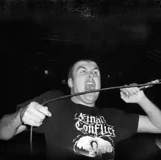 Brusco cambiamento di rotta: da un Grind rockeggiante si passa ad una proposta veramente intransigente e nera come la pece: i Vomit The Soul (anche titolo di una canzone dei 'Cannibal Corpse'), trio di Lecco, calcano il palco e dopo qualche arrangiamento tecnico scatenano l’inferno. Sinceramente non mi aspettavo che anche qui in Italia potesse trovare spazio una realtà musicale tanto feroce e violenta, molto simile a Devourment, Enmity e Disgorge americani; insomma il massacro più incondizionato e cieco. Personalmente avevo già sentito nominare questo gruppo ma non avevo mai potuto ascoltare niente, essendo i demo decisamente introvabili. Il cantante chitarrista Max (che in seguito mi concede una lunga chiacchierata) è eccezionale soprattutto sotto il profilo vocale; sicuramente si tratta de migliore di tutta la serata battendo di gran lunga anche la leggenda di Mark “Barney” Greenway; accanto ad un growl dei più bassi e bestiali in circolazione, troviamo aperture vocali che ci rimandano a Giorgio Pescatore (Gorge Fisher per i pignoli), arcimaestro della voce dei Cannibal Corpse. Ma al nostro conterraneo non manca nemmeno la perizia e, concentrato come appare nel suonare il suo strumento, da vita ad una performance parecchio tecnica e difficile, prodigandosi in un riffing ampolloso e pesantissimo. I suoi compagni sono altrettanto bravi e suonano il basso e la batteria con il giusto equilibrio tra passione e lucidità. Il pubblico è già abbastanza caldo e accoglie bene le torture sonore proposte da Max e soci: il Brutal regna sovrano per una mezz’oretta, le canzoni sono un buon numero, assolutamente spossanti sotto il profilo psico fisico ma curate e suonate bene. I gorgheggi del vocalist e la brutalità integralista del tris mi conducono ad uno stato estatico, quasi mistico; il complesso si dimostra competitivo a livello europeo e mondiale e tiene alto il vessillo del Brutal Death italiano. Bravo, bravi Voto: 9