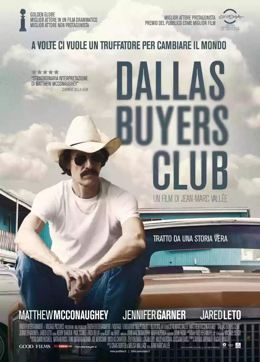 La trama è presto detta: un elettricista omofobo, cocainomane e puttaniere scopre, a metà degli anni '80, di essersi cuccato l'Aids. Brutta storia, soprattutto da chi pensa che solo i gay possano prenderselo. Fa qualche ricerca e scopre che, no, non solo i gay sono a rischio. Nel frattempo l'Fda approva un medicinale che pero' sembra faccia più male che bene nella cura dell'Aids, mentre il nostro, con l'aiuto di un compiacente lavoratore dell'ospedale di Dallas, città in cui è ambientato il film, scopre che in Messico un dottore radiato dall'albo utilizza un farmaco, non approvato, funzionante. E mette su, insieme a un amico travestito (l'omofobia pian piano scompare) il Dallas Buyers Club, dove, in soldoni, guariscono pazienti che in ospedale, col farmaco approvato dall'Fda, non ottengono risultati.