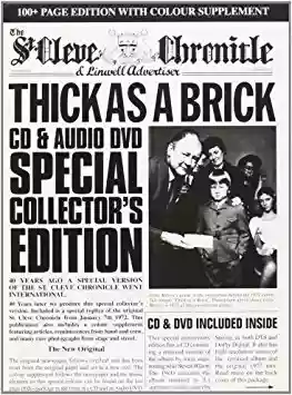 Sto per recensire il mio album preferito. Preciso che non lo sto recensendo nell'edizione rimasterizzata (chiamata Late Extra) uscita in occasione del venticinquesimo anniversario dell'uscita dell'album; oggetto di questa mia recensione, infatti, è il box set da collezione Thick As A Brick - CD & Audio DVD Special Collector's Edition. A prima vista sembrerebbe essere un'edizione speciale confezionata così a caso per festeggiare il quarantesimo anniversario di un album; e invece no! Quello che sto recensendo non è affatto una Special Edition confezionata a caso! Dal punto di vista dei contenuti audio/video ha poco da offrire, questo sì, ma chi, come me, adora l'album Thick As A Brick potrà trovare pane per i suoi denti. Come dice il nome di questo cofanetto, questo box set include un CD e un DVD audio. Nel CD (di uno splendido verde pistacchio!) c'è l'album, ma questo ascolto riserva una sorpresa: Steven Wilson, infatti, ha pensato bene di 'remixarlo' e di togliere dieci secondi rispetto all'originale. Ma questo secondo me non è un difetto, tanto più che la nuova versione è praticamente identica alla versione originale. Il DVD contiene invece l'album in versione originale e uno spot radiofonico usato per promuovere il disco.