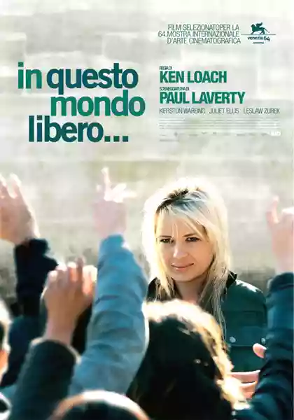 “It's a free world...” è datato 2007, il soggetto e la sceneggiatura sono opera di Paul Laverty. La vicenda si sviluppa come una spirale, cioè se consideriamo uno spazio a tre dimensioni x, y e z avremo che, a un certo punto, la nostra funzione, che nella metafora è la vicenda, arriva a un punto che ha le medesime coordinate x ed y ma ha subito un Δz e questa variazione avviene in Angie, la protagonista interpretata da un ottima (e spero di non essere fuorviato da parametri puramente estetici) quanto sconosciuta Kierston Wareing. Per tradurre le mie elucubrazioni matematiche, il film inizia e finisce con la protagonista che si trova a fare esattamente le stesse cose, ma in una posizione e con uno stato d'animo profondamente differenti.