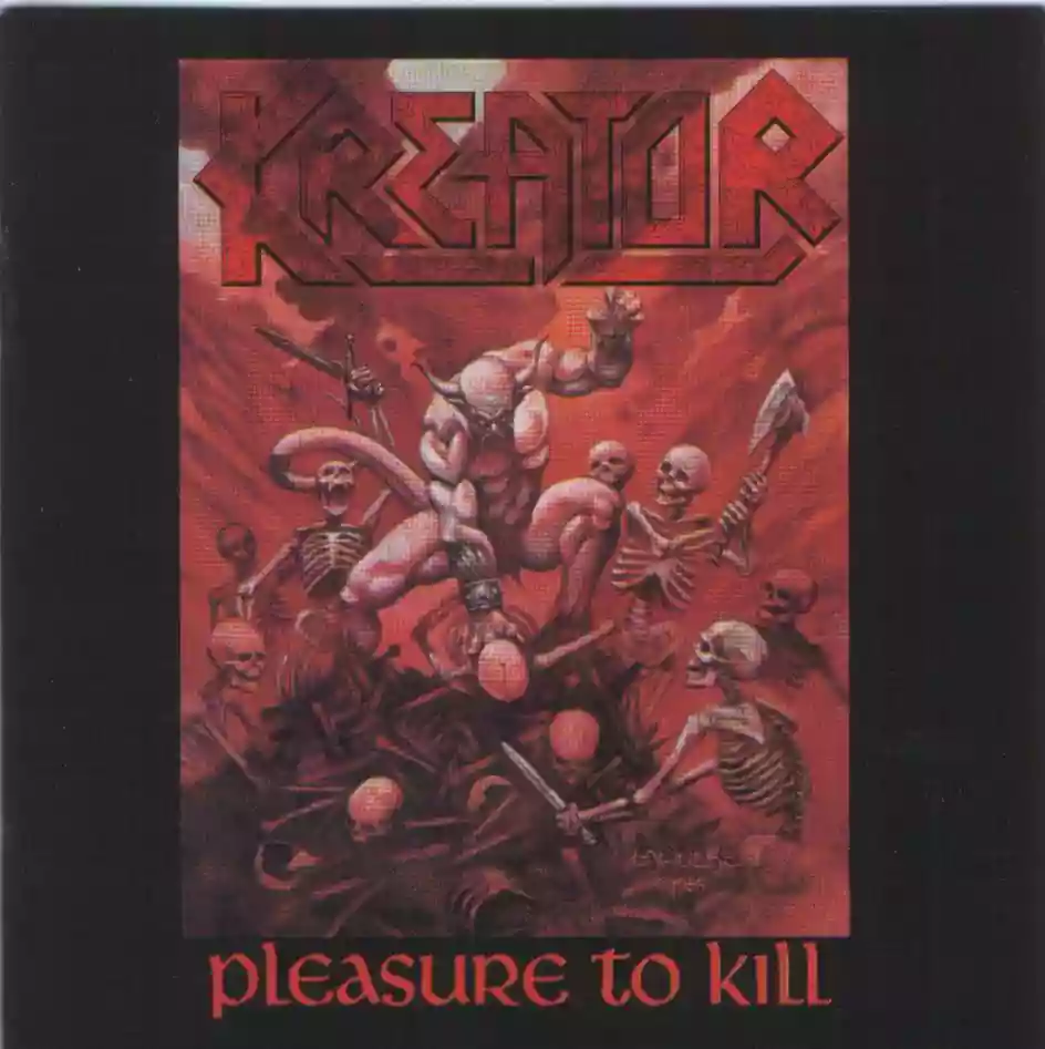 Proprio questo florido periodo però è riuscito a diffondersi attraversando l'oceano e arrivando nella nostra cara e vecchia Europa, soprattutto in Germania, dove questo genere stava fiorendo, arrivando a buonissimi risultati grazie a molti gruppi. Tra questi cito i Kreator, band guidata dal carismatico chitarrista-cantante Mille Petrozza, seguito da Jurgen "Ventor" Reil alla batteria a da Rob Fioretti al basso, che proprio nel 1986 hanno dato alla luce il loro secondo full-lenght, cioè "Pleasure To Kill", considerato da molti il vero capolavoro della band.