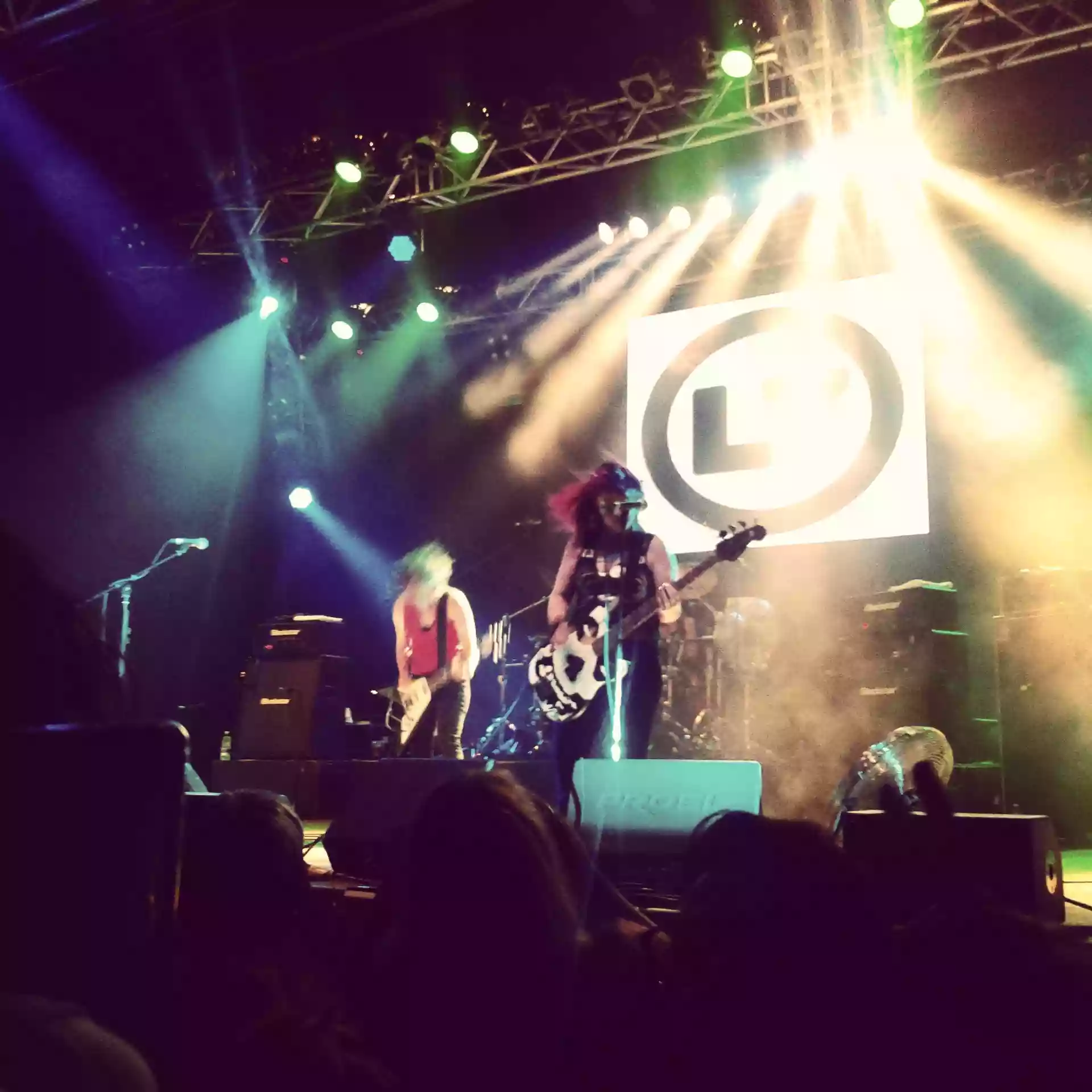 Ogni volta che ho la fortuna di guardare e ascoltare una Band anni ’90 mi capita una fatto stranissimo che mi fa concetrare pensare al tempo che passa,si, perché qui o Doc McBrown ci ha messo lo zampino con il suo continuum tempo spazio oppure il signor Copperfield sempre nei nostri anni ’90 ha innescato quella che io chiamo “La magia del tempo interrotto”.Sono le 20,30 e sul palco salgono gli Acid Muffin che scaldano bene il palco intrattenendo un pubblico scarno ancora intento a fumare nella saletta esterna,poi e’ il momento dei White Miles un duo come se ne vedono tanti negli ultimi tempi,suono forte e compulsivo ma niente di sorprendentemente originale, a loro discolpa la batteria eccessivamente alta che copriva le melodie della chitarra e della voce ad eccezione di qualche urlo,in sostanza promossi gli italiani! Sono le 22,entrano Donita Sparks, Suzi Gardner, Dee Plakas e Jennifer Finch ed il tempo si ferma,veniamo catapultati di almeno venticinque anni al movimento “Riot Grrrl!” al “Rock for Choice” e mi vengono in mente tutti i momenti passati davanti alla televisione a guardare VideoMusic aspettando un video dei Nirvana o dei Soundgarden o delle stesse L7 tra i tanti video pallosi di Band meteore che giravano a quei tempi,insomma se non fosse per qualche ruga in più’e un po di pancetta qua e la l’impatto delle quattro Riot Girls e’ eccezionale ed emozionante.Un bel suono livellato dalla loro Road Crew ci fa penetrare in brani come: Deathwish,Andres, Everglade, Monster, Scrap fino a chiudere il pre-bis con Shitlist. Ovviamente le ragazze,anche se dovrei dire signore perché’ tutte superano i cinquant’anni,tornano sul palco eseguendo le ultime tre song tra queste anche Pretend We’reDead.Il concerto finisce alle 23,30 e in quel esatto momento realizzo che non ho più’ i capelli folti e lunghi,non sono venuto al concerto in Autostop e non ho nella borsa il mio libro di Kerouac,tutte cose che avevo fino ad un momento prima.