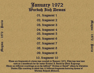 Un mese dopo la pubblicazione del disco i Magma giá stavano lavorando a Kohntarkosz e il Wurdah Itah in studio non venne mai piú registrato. Le due uniche versioni ad essere disponibili, per quanto mi risulta sono dal vivo; un´estratto di poco piú di quindici minuti uscito nell´ interessante Les voix de Magma del ´92 e nella trilogia Theusz Hamtaahk registrata e pubblicata nel 2001, finalmente completa dopo trent´anni, che riunisce per la prima volta il primo movimento col Wurdah Itah e il Mekanik Destruktiw Kommandoh del quale peraltro esistono numerose versioni giá pubblicate.