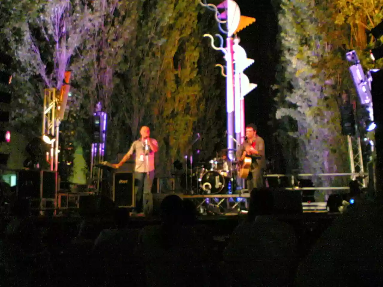 I cambi di scena e l’attesa fra un gruppo ed un altro sono di volta in volta allietati dalla voce della dolce “Serena”. Il tutto rigorosamente in acustica. I protagonisti della serata però sono ancora una volta loro: i Marta sui Tubi. Accompagnati da alcune insistenti gocce di pioggia, che sfortunatamente hanno cominciato a cadere proprio quando toccava a loro salire sul palco ma che hanno in fondo contribuito a sottolineare ancora di più questa strana ma piacevole atmosfera, hanno cominciato il loro spettacolo. Breve rispetto alle precedenti esibizioni del gruppo a cui ho assistito, ma sempre e in ogni caso intenso e ricco di emozioni. La serata sta per finire e con ritmi frenetici e melodie incandescenti i MST ravvivano gli animi. Questo astratto ed immaginario, ma così reale viaggio in cui ci accompagnano, si compone attraverso alcune delle migliori canzoni del gruppo fra cui “Vecchi Difetti”, “L’abbandono”, “Muscoli e dei”, “Post”, “Stitichezza Cronica” e “Sei dicembre”.