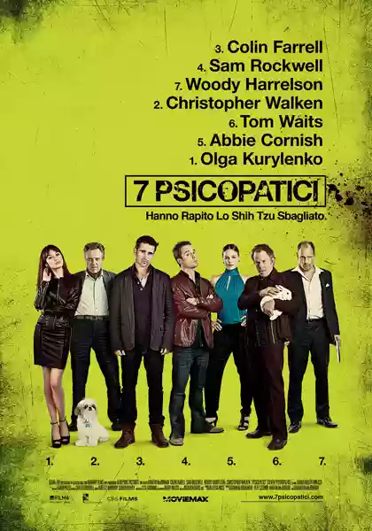 "7 Psicopatici" è una grottesca commedia nera dalle venature pulp, con riferimenti all'industria cinematografica, in particolare al lavoro dello sceneggiatore e McDonagh probabilmente ci mette riferimenti autobiografici e personali nel protagonista interpretato da Colin Farrell. La vicenda è surreale, procede piacevolmente tra rapimenti canini, ammazzamenti, dialoghi brillanti, disgressioni omicide di psicopatici (in particolare la divertente storiella dei serial killer di serial killer, protagonista Tom Waits) fino all'epilogo nel deserto californiano.