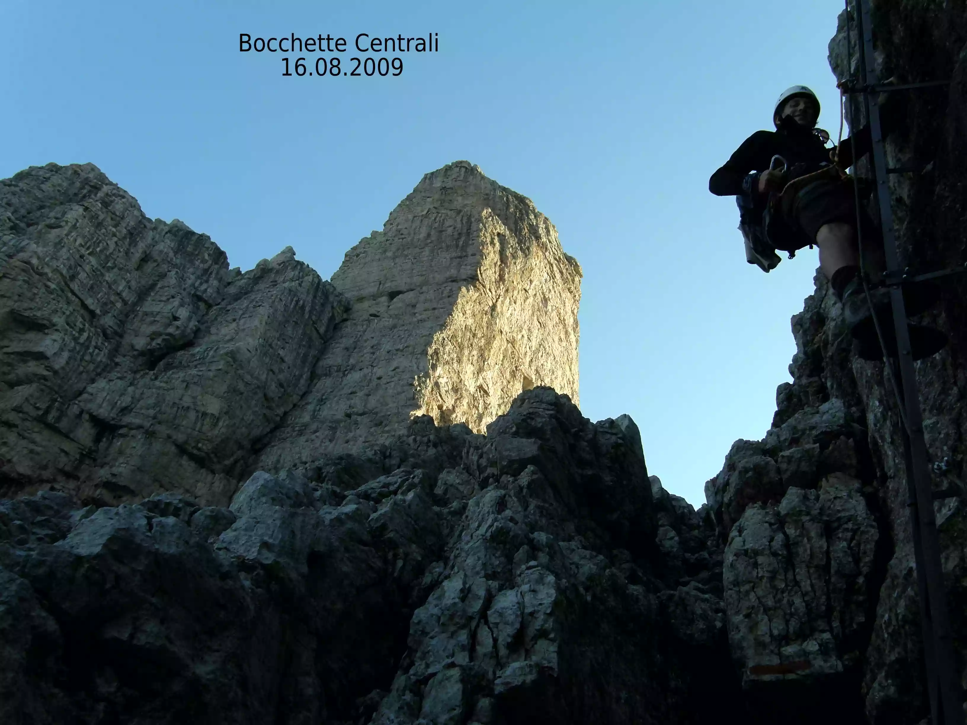 E’ l’inizio di una mia gita; la numero 80in 2 anni e 8 mesi nonostante gli impegni sportivi amatoriali ed il lavoro. Vedere la notte che lascia spazio al giorno in questo posto, da soli in mezzo a chilometri di maestose rocce e vette è una sensazione unica. Ti senti piccolo, quasi indegno e fuori posto, ma al contempo fiero di quello che stai facendo. Il sole arriva e la dolomia prende fuoco con il suo tipico colore. Mi metto l’imbrago e via le prime cenge per salire ed arrivare in alto a 2900 metri e godere di un mare di nuvole sottostanti mentre quassù un sole caldo splende narciso. Una scala e di fianco eccolo lì il mitico Campanil Basso; cima che ha fatto la storia dell’alpinismo trentino nei primi decenni del secolo scorso. E poi la cosiddetta ciclabile delle dolomiti: una cengia larga a forma di U con strapiombi di centinaia di metri. Scendiamo per 5 scale consecutive fino ad un nevaio che porta al Rifugio Alimonta. Sono le otto e mezza e cominciamo ad incontrare la massa: i proprietari delle macchine di questa mattina che iniziano quello che noi abbiamo appena finito e ci siamo gustati fino al midollo. Ci guardano l’aria perplessa e stupita del linguaggio universale degli occhi: “e questi due da dove cazzo arrivano che non sono nemmeno le nove????”