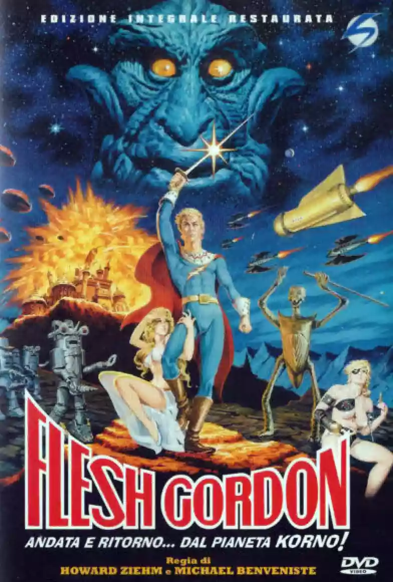 Quando nel 1974 i registi Benveniste e Ziehm decidono di realizzare un film bizzarro, unendo l'utile al dilettevole, pensano nientemeno che ad una satira porno dei film ispirati al super eroe Flash Gordon. Questo personaggio era stato creato dal fumettista Alex Raymond nel 1934 e , dato il grande successo , alcuni film ispirati alle sue avventure erano stati realizzati fra il 1936 e il 1940. Si sa che, in quegli anni, gli Usa attraversavano il periodo della Grande Depressione economica e qualsiasi iniziativa ricreativa intesa a svagare le masse (film, fumetti,musical ecc.) era ben accetta . Ma se in quegli anni '30 una certa mentalità perbenista non consentiva di realizzare opere audaci (vedi il severo codice Hays per i film), la situazione negli Usa e nel mondo cosiddetto occidentale negli anni 70 era radicalmente diversa . In America, alle prese con i postumi dolorosi della guerra in Vietnam e con l'affare Watergate, spirava un certo vento di liberalizzazione in materia di costumi sessuali e in tanti film certe tematiche venivano affrontate con un certo piglio esplicito. Ecco perché, al fine di sperimentare e divertire il pubblico, uscì un film come "Flesh Gordon - Andata e ritorno, , dal pianeta Porno!!" ove il nome del protagonista non è più Flash Gordon, bensì Flesh (carne) Gordon giusto per mettere in chiaro la componente erotica del personaggio e della trama . Pertanto la vicenda riesce ad essere decisamente boccaccesca e divertente (il che è conseguente in materia di eros..).