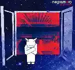 Una persona stilizzata, un innamorato pensieroso, con le braccia ad X su una finestra.