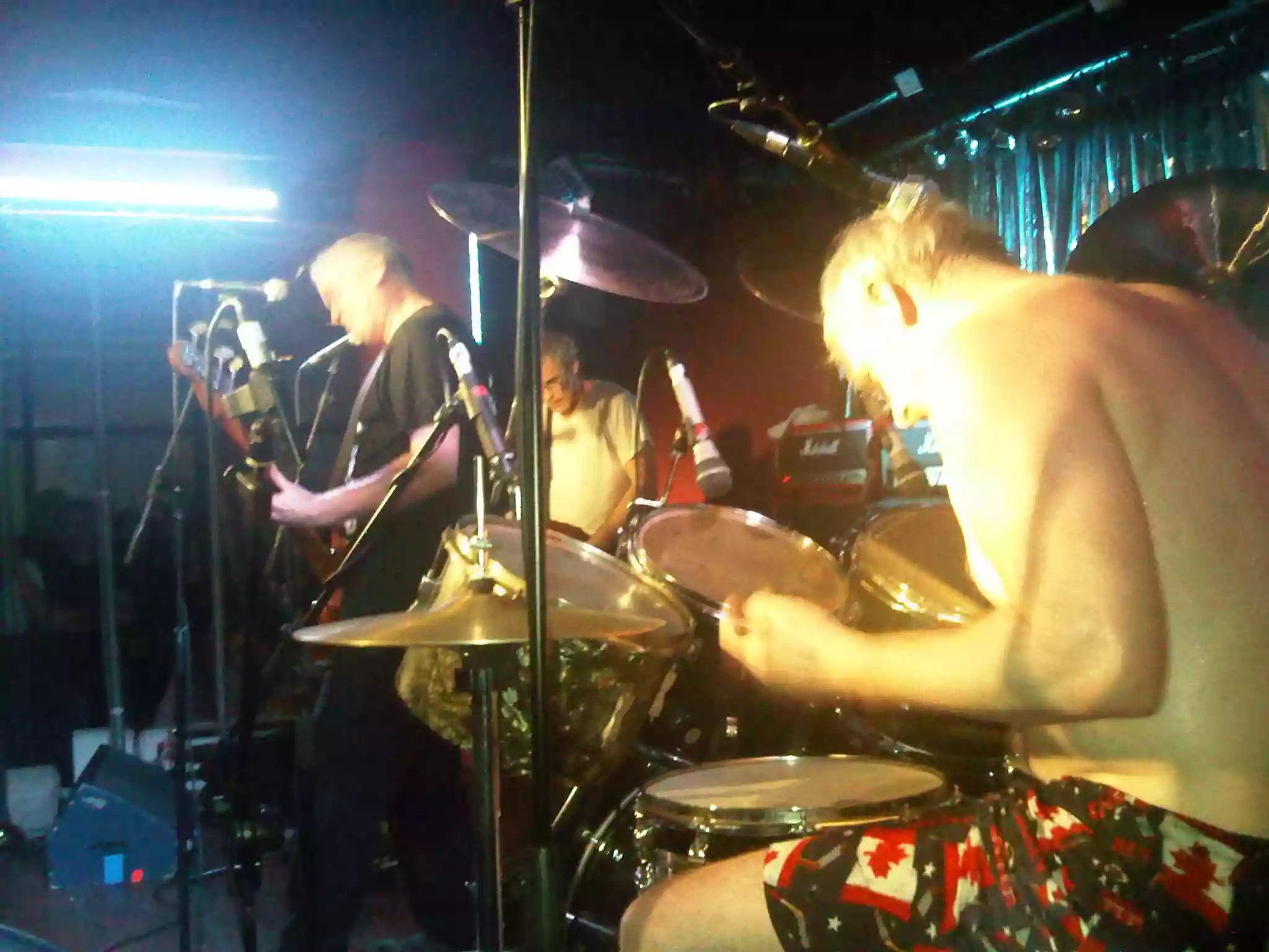 Beh, in modo molto tattico arrivo alle 23. Per fortuna gli Invasives stanno finendo. Tralascio solo per rispetto e attendo l'arrivo degli "old are the new young". Perchè questi adorabili vecchietti sono la più grande e potente macchina ritmica al mondo. La dimostrazione che un set drum del 90 suona da dio se dietro c'e' un Dio come John Wright e la sua tecnica sopraffina (sopratutto negli accenti al rullante, movimento del pedale dx della gran cassa e le variazioni continue sul china) o un violentatore del basso come Rob. Ci metti poi quell'elemento da sbarco di Tom Holliston e la ricetta è fatta come direbbe la mia amica Chef.