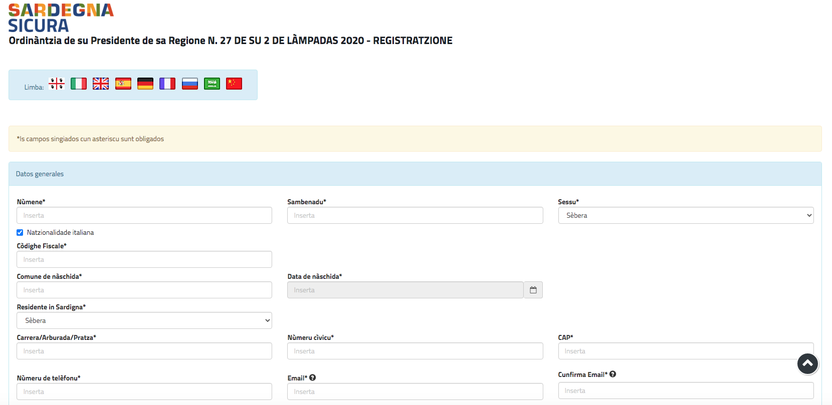 fantastico....mi sto registrando a Sardegna Sicura e si puo' selezionare limba sardu........