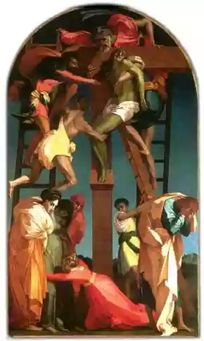 La deposizione di Volterra è uno dei capolavori di questo misconosciuto artista - i cui putti ornano tuttavia le inconsapevoli cartelle o i quaderni dei liceali nostri contemporanei - che ben ci permette di dare un po' di concretezza alla premessa generale attorno allo stile della "maniera", e, soprattutto, attorno ai suoi pregi, ad onta del tono con cui, ancor oggi, si taccia un'espressione artistica di "manierismo": quasi a significare una tecnica sterile, stantia, ripetitiva, poco ispirata ed inutilmente complessa, non casualmente antitetica ad un precedente ipotetico modello classico o canonico.