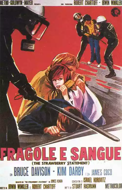 Dietro ogni opera cinematografica ci sono delle motivazioni e raramente assumono connotati artistici. E' molto probabile infatti che se nel 1969 Peter Fonda non avesse prodotto "Easy rider", monumento (pre - sepolcrale?) della cultura hippy, la Metro Goldwyn Mayer non si sarebbe mai e poi mai lasciata convincere a produrre alcuni registi come Antonioni ed Altman, men che meno l'ormai dimenticato Stuart Hagmann, che firma appunto "Fragole e sangue". Risulta effettivamente strano credere che un film sulla contestazione giovanile sia frutto di una macchinazione da produttore hollywoodiano, così come non stupisce affatto l'idea per cui un tempo erano le pellicole impegnate ad attirare la gioventù, oggi basta molto meno, ma questa è un'altra storia. Tornando a noi, fu così che la coppia di produttori Winkler / Chartoff affidò ad Israel Horovitz, sceneggiatore, un soggetto tratto da un best seller dell'epoca circa le rivolte studentesche che interessarono New York, "The strawberry statement", del giornalista James Simon Kunen. Il tutto venne messo nelle poco esperte mani del già citato Stuart Hagmann.