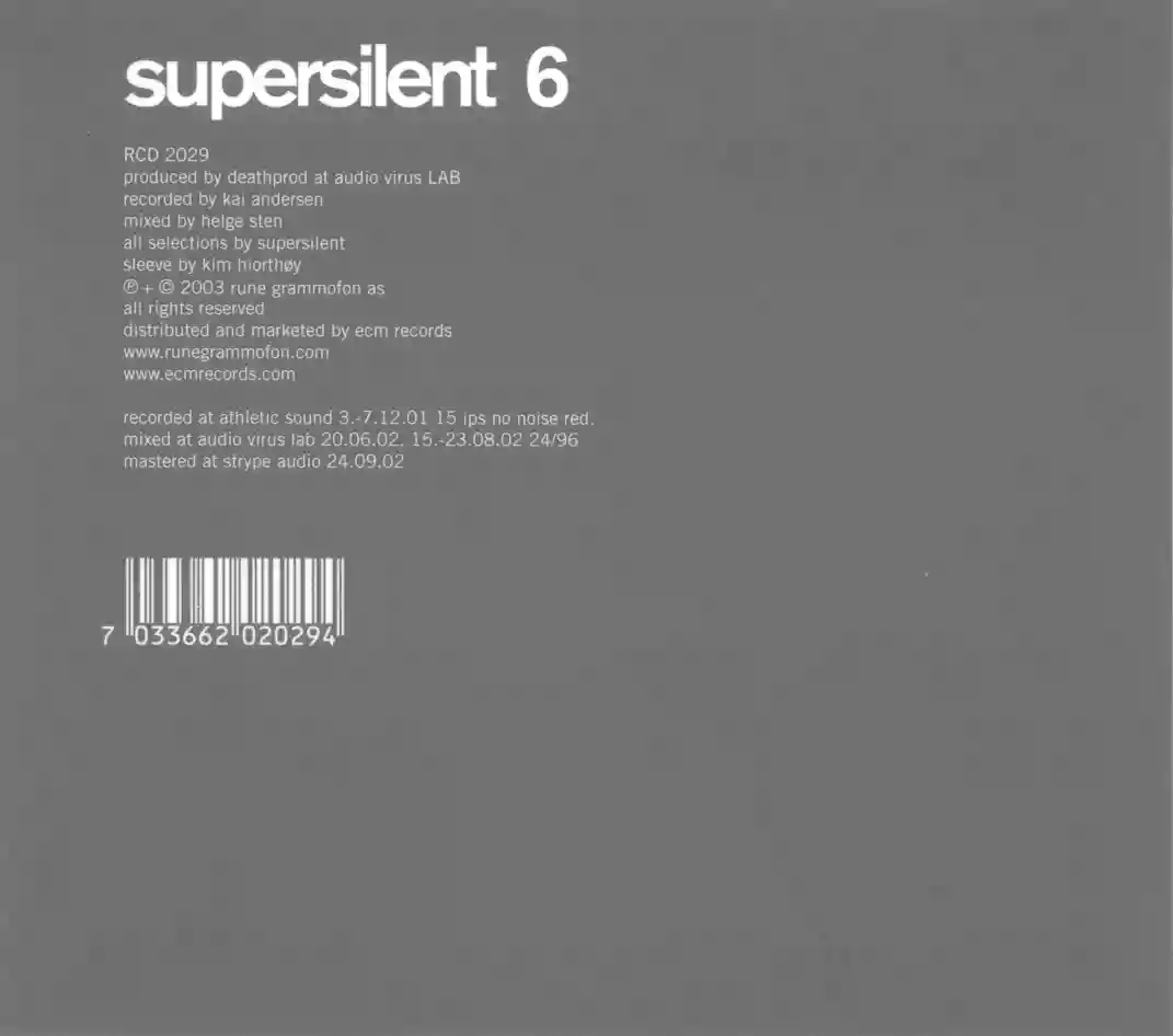 I Supersilent sono bravissimi, estremamente originali ed estrosi. Chi non li conosce può cominciare proprio da "6". Il modo ideale per conoscere questo gruppo e il loro stile. Come posso definirli? Un'avanguardia della musica di oggi!