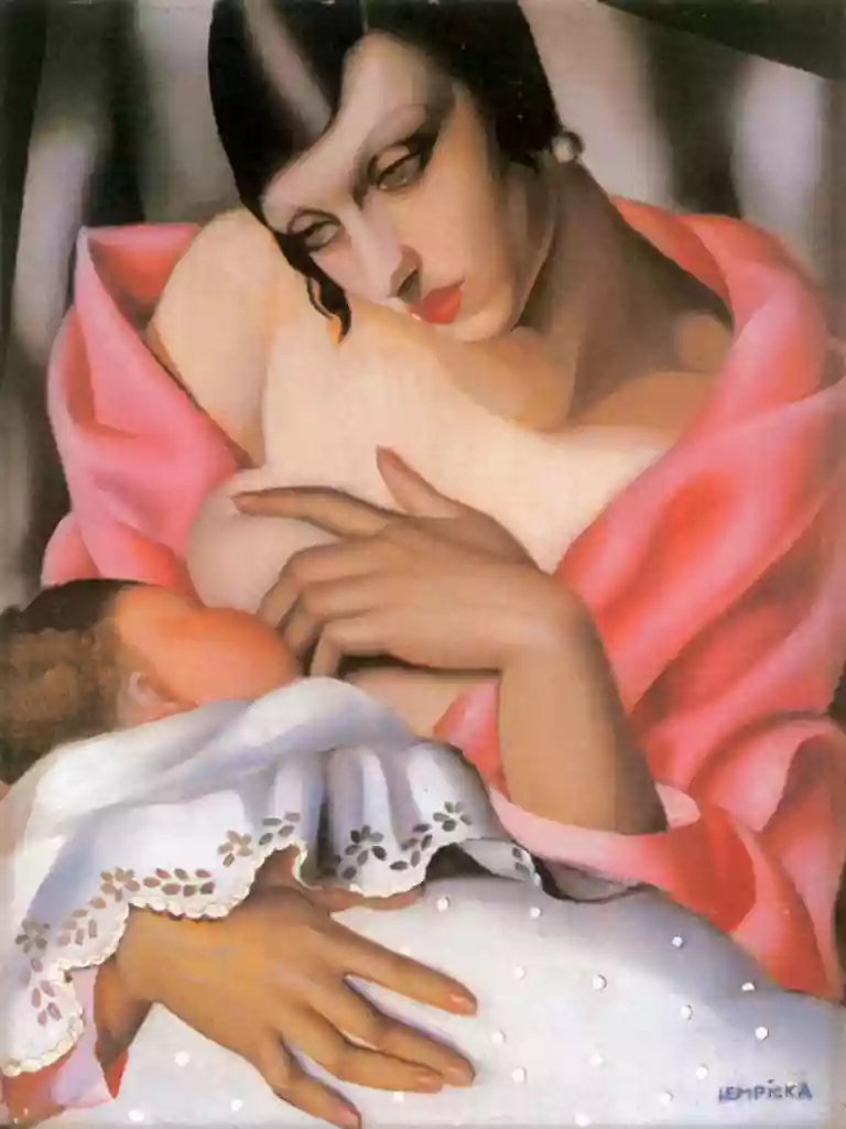 Il complesso della maternità, o per lo meno di una sequenza che ne garantisce la tenerezza, assume, attraverso la visione "ingioiellata" di Tamara De Lempicka, una dolcezza insospettabile, forse inconcepibile, o che attribuiresti con frettolosa superficialità ad un elemento esterno. L'artista polacca, che faceva un largo uso del nero et/aut colori freddi, riusciva però a donare, ad ogni opera, una ricchezza materiale capace di distorcerne l'anima, cogliendo di sorpresa l'immagine comune nella mente dello spettatore, stravolgendone lo stato emozionale.