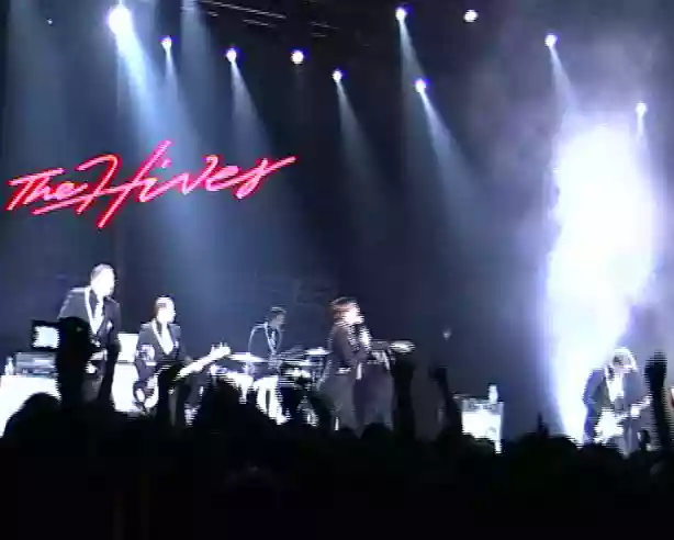 Fracassoni, gigioni e casinisti, molto in forma e con una sana voglia di timbrare il cartellino e - il cantante - anche di chiacchierare (persino un po' troppo - madonna, quanto ha parlato...), sabato sera scorso gli Hives hanno roccato e rollato l'Alcatraz per la gioia di un sacco di gente che al Rolling Stone originariamente previsto non ci sarebbe stata e che lì invece si è scatenata in una bolgia che ha accompagnato i nordici bianchi e neri dall'inizio alla fine. Onesti e precisi, sempre tirati, anche se a onor del vero non ho ravvisato tecnicismi esasperati da virtuosi che richiedano inversimile impegno nel loro sanguigno punk 'n' roll, hanno pestato tutti alla grande; il frontman ha evidenziato qualche difficoltà quando non c'era da fare quello che gli riesce meglio cioè a) urlare b) imbonire di cazzate il pubblico, ma se la sono cavata comunque egregiamente, sgusciando dai loro bei completini neri con risvolti bianchi e restando sudati da spremere in camicia. Preceduti dai pesantucci e mascherati Henry Fiat's qualchecosa che dal vivo sembra quasi che vogliano fare hardcore, gli Hives hanno triturato 78 minuti della loro miglior musica: punketto rumoroso e tonico, ultravivace ma nonviolento, direi quasi à la page; hanno presentato quasi tutto l'ultimo album più qualche vecchio cavallo di battaglia (x es. "A little more for a little you") e così il pubblico ha scalciato, pogato e sudato con loro e se ne è andato via contento. Mi sento musicalmente più ricco dopo questo concerto? No, perché alla fine ho deciso che sono un po' plasticosi e non mi piacciono così tanto, ma per venti euro oggigiorno che cosa vuoi di più dalla vita?