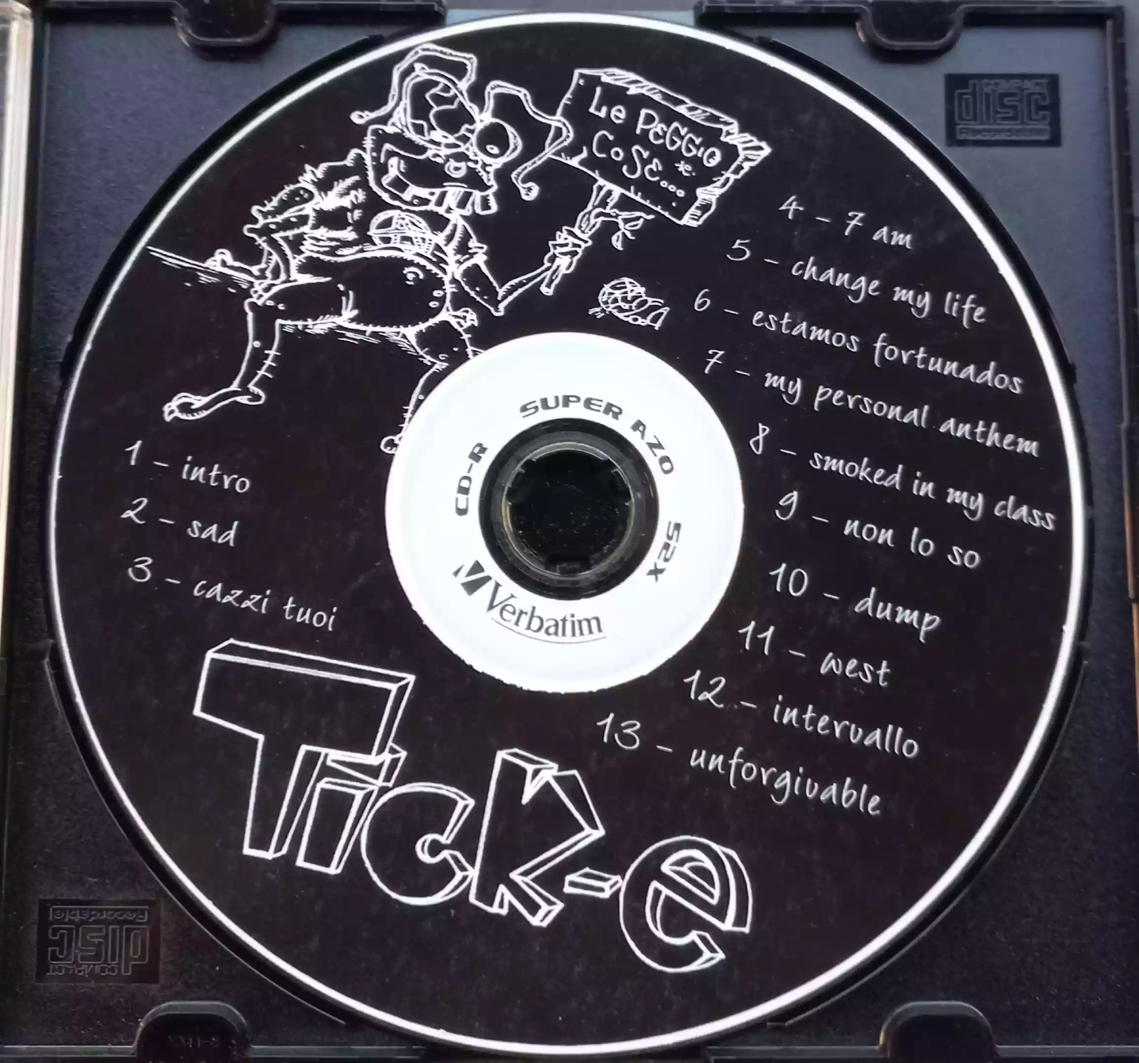 Questo album non è un capolavoro, non è nato per esserlo: aveva il solo intento di narrare gioie e dolori, goliardia e profondità di un adolescente. Moltissimi album sono stati scritti con questo scopo; fra tutti quelli che ho ascoltato, questo è nettamente il migliore. Probabilmente è più che altro una questione di campanilismo: è ragionevole pensare che se i Tick-e fossero esistiti, pari pari, in provincia di Pavia o di Catania la loro musica mi avrebbe lasciato indifferente, o al massimo mi sarebbe risultata simpatica. Di sicuro non ci avrei investito uno smisurato carico emotivo, come ho fatto negli ultimi vent'anni. I Tick-e potevano nascere a Pavia o Catania o anche solo a 30 km da casa mia: invece sono esistiti nella mia città, e sono stati ragazzi nello stesso posto e nello stesso momento in cui sono stato ragazzo io, e perciò parlano la mia lingua. Nella popolosa lista dei miei album preferiti al mondo, "Le peggio cose..." sta tranquillamente nella top 5.