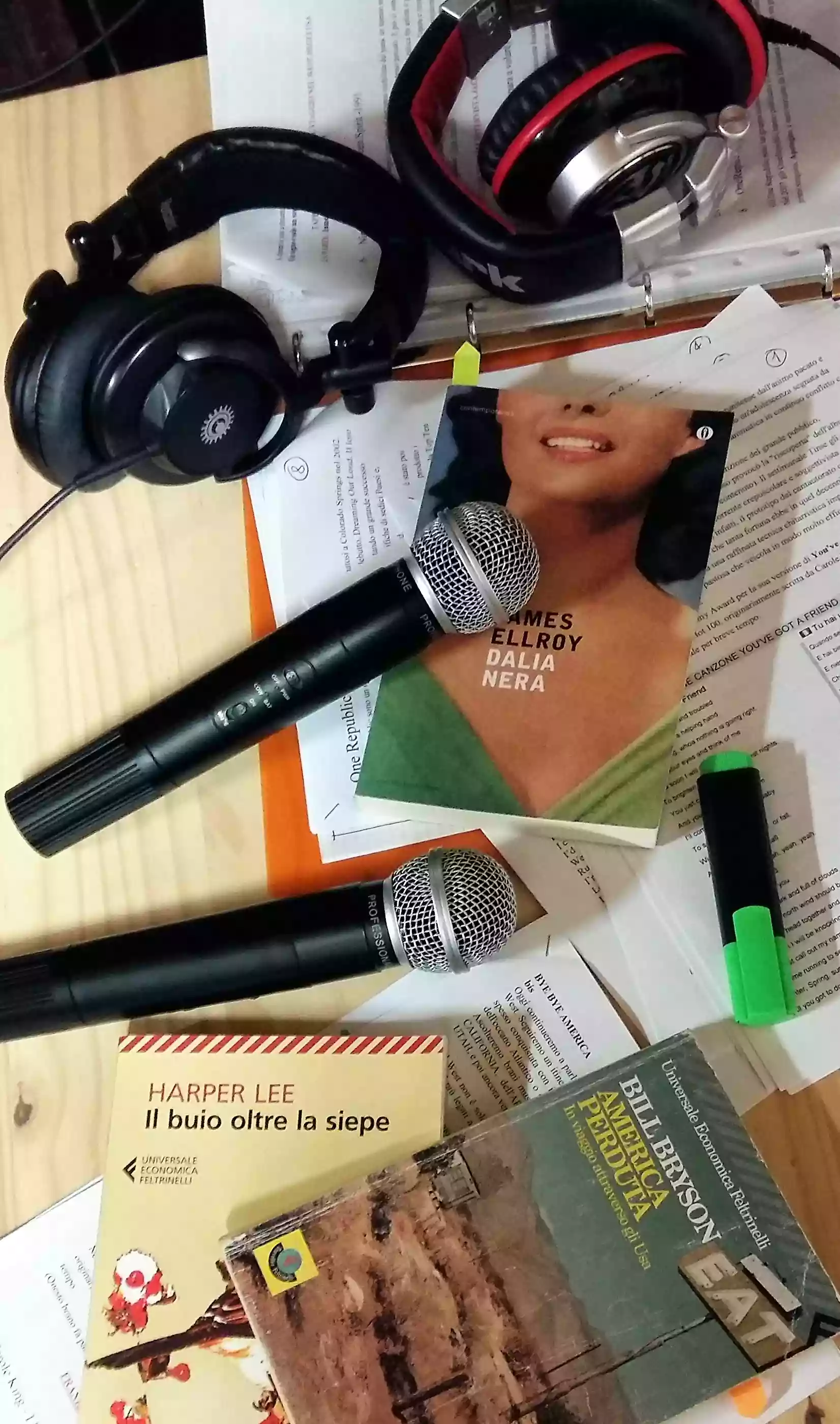 La cosa più divertente di questo lavoretto è che mi impegna soltanto uno o due pomeriggi la settimana, non di più perché tra poco mi manterrò agli studi con attività più serie e 'remunerative', e poi, devo anche allenare dei bambini una o due volte la settimana e il sabato o la domenica c'è la partita della squadra di rugby del mio paese, poi devo tenermi in esercizio con la chitarra perché sono in un gruppo grange rock alternativo, nel senso che ci scambiamo'alternativamente' gli strumenti o il posto dove suonare. Come avrete capito sono molto impegnato ed è per questo che non ho una ragazza, non saprei proprio, dove metterla, la settimana vola via e poi c'è la tesi... penso che anche quest'anno non ce la faccio a laurearmi. Comunque, dicevo, da un anno lavoro in una radio web, il posto non è proprio di merda, ci sono tutte le strumentazioni che servono: tre cuffie professionali e tre microfoni (tre è il numero perfetto dice il capo che, oltre tutto, è anche un tipo prudente perché se ci dimentichiamo di mettere in carica il 'gelato' - così vengono chiamati i microfoni di quel tipo - ce n'è un altro pronto) inoltre, abbiamo anche un vecchio computer che funziona con programmi criccati dal capo che fa il perito informatico e se ne intende di queste porcherie, a me non interessano, la parte tecnica è compito suo io faccio il programma di musica, cultura e news. Dicevo che lavoriamo in un magazzino ed è questa la parte più fastidiosa di questa attività, insomma, non è simpatico arrivare alla porta del magazzino passando sotto i fili della biancheria stesa, e camminare a fianco al prato con l'erba alta come fossimo in una savana, e quando gli dico - ma non la tagli mai 'sta erba? - Lui mi ripete, sempre, - la prossima settimana! - E' per questo che qui non ho mai portato i miei amici del gruppo dove suono, mi scoccia che vedano questa merda di posto, ma quando sono davanti alla mia postazione con le cuffie in testa e il microfono acceso davanti ai miei appunti, vedo solo le luci dei monitor e della strumentazione e mi dimentico della merda che ho intorno.