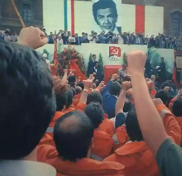 Gorbacev, Arafat. Mastroianni, Rosi, Moravia. Craxi, Spadolini. Giancarlo Pajetta trema mentre ne annuncia il ricordo. Il Mar Rosso si apre, come per Mosè e appare anche il nemico. Miracolosamente. Anche Giorgio Almirante, il fucilatore fascista, si inchina al Grande Compagno. Scorrono interviste, ricordi, parole di gente comune. Tanti i singhozzi e infinite le lacrime.