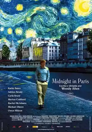 Ormai in procinto di convolare a nozze con una velina, poco radical e molto chic, si trova a camminare attanagliato dai suoi dubbi per le vie illuminate di Parigi. Passo dopo passo rievoca mentalmente la bellezza della città nello splendore degli anni ‘20 e proprio allo scoccare della mezzanotte questa ambientazione non può far altro che prender magicamente forma.